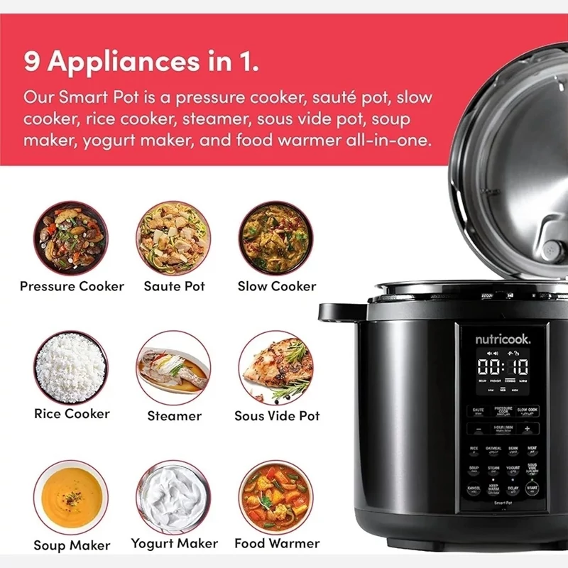 عملکردها: زودپز، آرام پز، بخارپز، پلوپز، سرخ کن، ماست ساز، پخت با تاخیر، گرم نگهدارنده
